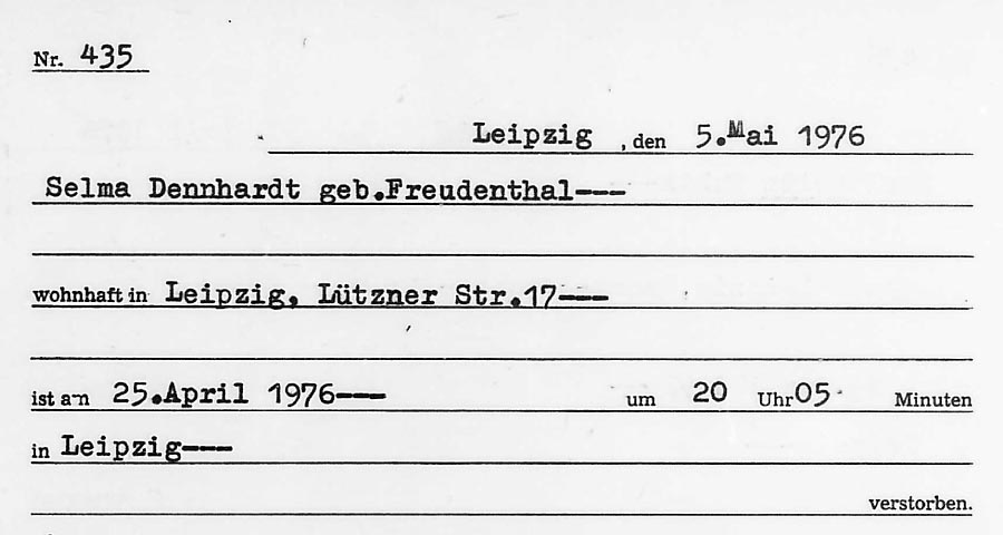 Dank einer berührenden Kontaktaufnahme konnte ich viele Fragen rund um das Schicksal von Selma Dennhardt geb. Freudenthal beantworten – und habe nun sogar Fotos.